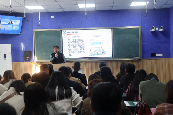 优秀班主任杨大明以《班级建设与管理》为主题,分享他日常班级管理的秘诀,即:主动一点,搭建平台;平等一点,树立自信;殷勤一点,及时反馈;看开一点,放眼一生。强调学生是发展中的人,老师要用长远的眼光看待学生,用爱心、耐心、热心、责任心对待每一位学生。
