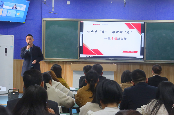 最后,学校党支部书记、校长刘达波作了《心中有戏,眼中有光》专题讲座。阐述了班主任工作的职责,对班主任需要具备的核心素养、班主任工作的重心进行了分析。他希望:在今后的班级管理工作中,班主任要做到偏爱后进生,厚爱特殊生,博爱中间生,严爱高材生,让师爱的阳光照进每个学生的心扉,拼战幸福班主任,争创幸福河西学校而努力!
