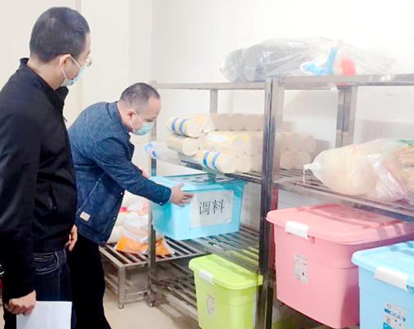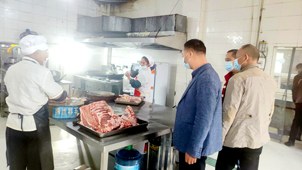 一行人先后来到食堂食品加工制作操作间、食品储藏室、学生就餐大厅,对环境卫生、食材储存管理、食品质量、食品保质期、食品加工制作过程、食品留样、菜量食谱张贴、设施设备以及餐具清洗消毒、防蚊防鼠防潮等情况进行了一一查看,并对自查情况进行了记录,对不足之处,要求相关人员当场即行即改。