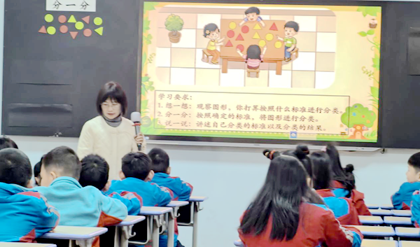 第一节课:《分一分》培养分类思维。张敏老师的《分一分》以培养学生分类能力为目标。教师精心设计"观察-分类-表达"的教学流程,引导学生自主确定分类标准并动手操作。课堂中,学生们积极思考、热烈讨论,通过实物操作和小组分享,不仅掌握了分类方法,更锻炼了逻辑思维和语言表达能力。
