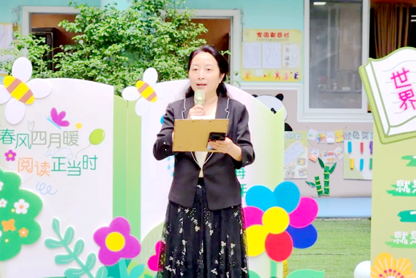 实验幼儿园副园长王芝英在启动仪式上致辞,她鼓励小朋友、家长和教师积极参与到阅读活动中,并强调阅读的重要性。她呼吁大家“常阅读,爱阅读,坚持阅读”,享受阅读带来的乐趣,感受书中的美好和温暖。