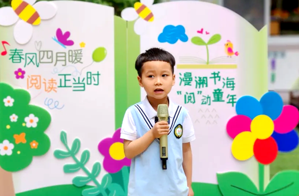 大四班朱博霖小朋友代表全园幼儿发出倡议,号召大家在接下来的日子里继续一起阅读,爱上阅读,让书香飘满幼儿园。他用稚嫩而坚定的声音表达了孩子们对阅读的热爱和期待。