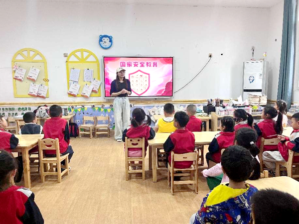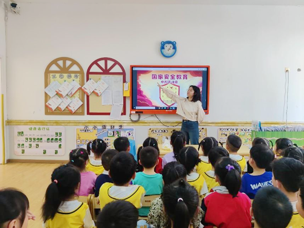 各班级教师根据幼儿年龄特点,利用生动形的由来和意义,深入浅出地介绍了国家安全的内涵,让孩子们对国家安全有了更直观的认识,深刻理解了“有国才有家”的道理。