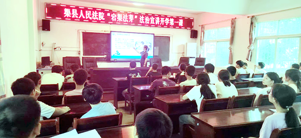为增强未成年人法治意识,筑牢校园安全防线,9月5日上午,渠县李渡镇第一学校联合渠县人民法院琅琊法庭开展了"宕渠法芽"法治宣讲进校园活动。琅琊法庭庭长通过真实案例剖析、情景模拟和互动交流等形式,为学生们带来了一堂生动深刻的法治教育课。