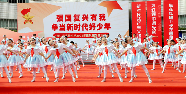 情景舞蹈《我想带上红领巾》以灵动的舞步演绎了少年对红领巾的向往,展现了新时代少先队员蓬勃的朝气。活动最后,大队辅导员带领全体队员呼号:“准备着,为共产主义事业而奋斗!”——“时刻准备着!”的回应声震云霄,传递出强国复兴有我的坚定决心。