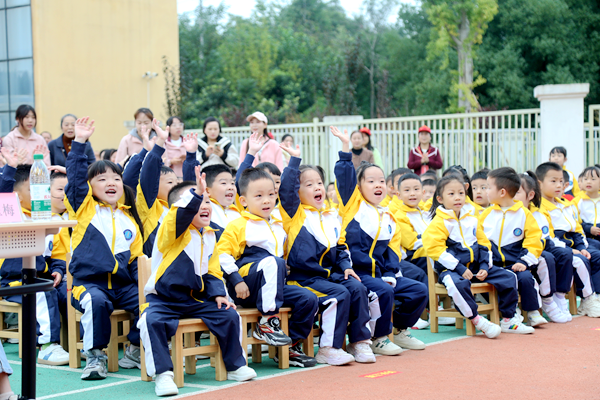 本次比赛以《3-6岁儿童学习与发展指南》为指导,旨在通过体育与美育相结合的方式,在幼儿心中厚植民族自豪感与爱国情怀。中班与大班幼儿分别登场,挥扇、跳跃、变换队形,动作整齐有力,器械运用灵活巧妙。功夫扇在孩子们手中开合转动,时而如蝴蝶翩跹,时而似流云舒卷,成为操场上流动的国风符号。各班队形设计也别具匠心,“同心圆”象征团结,“花瓣阵”绽放活力,在运动中传递出协作与创意的教育理念。