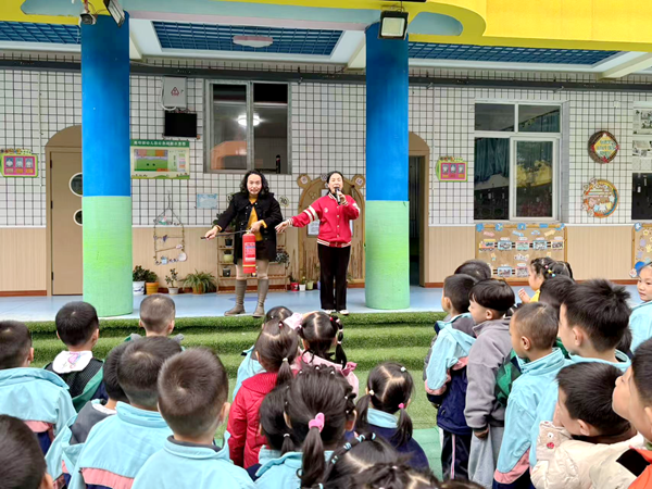 成功集结后,园长妈妈对本次演练活动进行了总结。她充分肯定了全体师生在演练中表现出的快速、有序和冷静,并再次强调了消防安全的重要性。我园安办主任在现场给孩子们展示了灭火器的使用方法,同时还进行了互动问答,巩固了“火警电话是多少”、“着火了怎么办”等关键知识,孩子们踊跃举手,对答如流,将现场气氛推向了高潮。