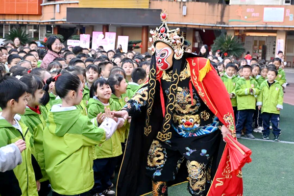 《童心戏韵》作为一场家校合作的视听盛宴,将现场气氛推向了顶点。舞台上,传统戏曲的韵味悠长,加之川剧变脸的神秘莫测,一颦一笑、一瞬一景都紧紧抓住了同学们的目光,雷鸣般的掌声与喝彩声久久回荡。表演唱节目《你好!新学期》精彩上演,歌声在校园上空回荡,点燃了每一位师生心中对新征程的向往与热情。