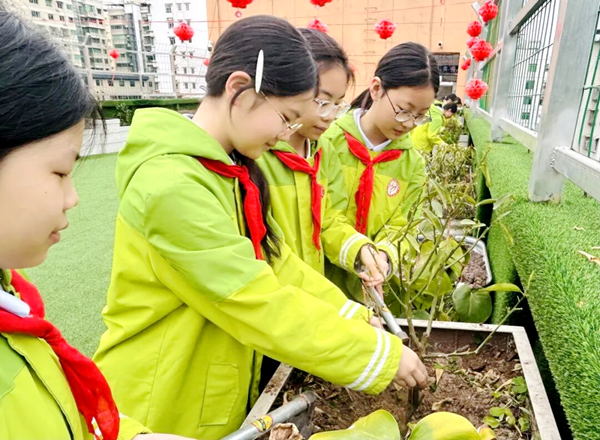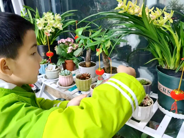 针对低年级学生的年龄特点,学校还设计了趣味爱绿护绿活动。老师们带领孩子们走进校园绿植区,手把手教大家学习浇水、松土的基本方法,孩子们小心翼翼地呵护着身边的一草一木,用稚嫩的小手守护小生命,在悉心照料中感受生命的力量,在心中播下爱护自然的美好种子,让每一间教室都成为充满生机与暖意的绿色小天地。