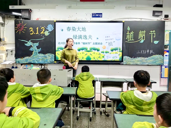 活动前期,学校便做好充分筹备,为系列活动有序开展奠定基础。3月9日,达川区逸夫小学以庄严的升旗仪式为契机,向全体师生发出植树节绿色倡议,号召大家主动践行植绿、爱绿、护绿责任,把对自然的热爱、对家园的守护,化作庄严承诺与行动自觉,让绿色理念浸润每一位逸夫学子的心灵,让绿色种子在心中生根发芽。