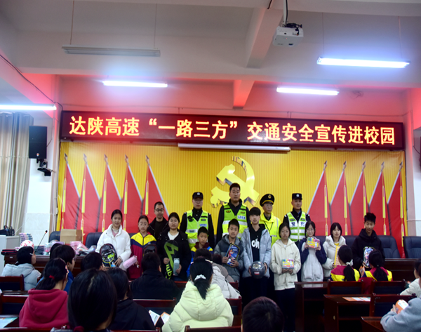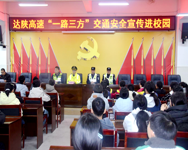 为进一步增强青少年交通安全意识,提升自我防护能力,筑牢校园安全防线,近日,四川省交通运输厅高速公路交通执法总队七支队七大队二级主办唐飞、四川省高速公路公安局五分局八大队一级警长向治华、四川达陕高速公路有限责任公司达州管理处路安大队副大队长林江一行,走进宣汉县普光学校,开展交通安全宣传教育活动。
