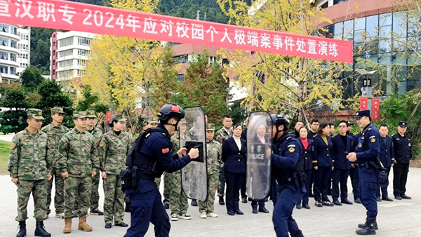 近期校园安全形势严峻,校园恐怖袭击事件频发,对师生的生命安全构成重大威胁。为强化校园安保力量,提升应对校园个人极端案事件处置能力,2024 年 11 月 21 日上午,宣汉职专安保处在宣汉县公安局指导下组织了应对校园个人极端案事件处置演练专项活动。