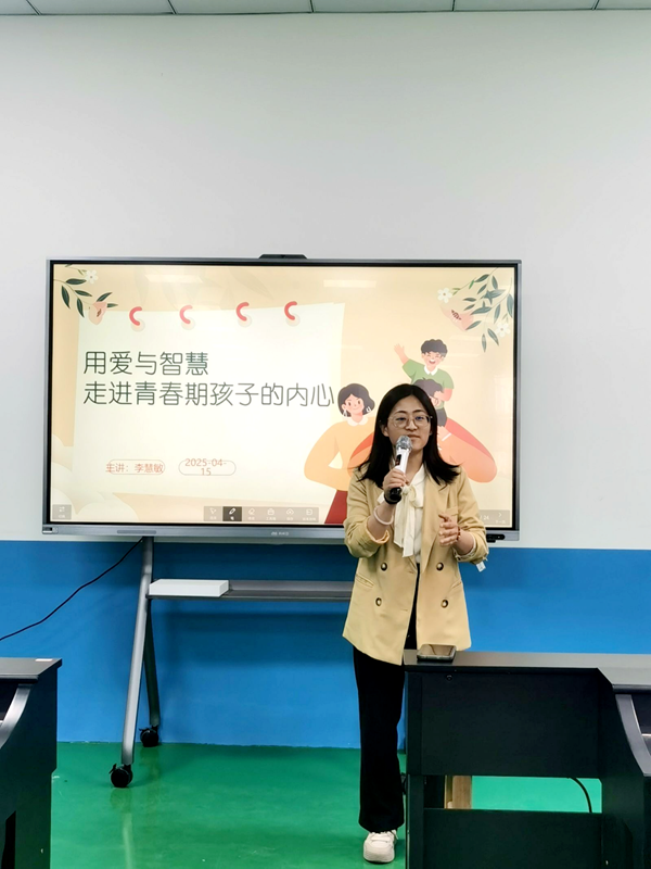 作为活动的重要环节,国家二级心理咨询师李慧敏老师以 “用爱与智慧走进青春期孩子的内心” 为题,为家长带来了一场亲子教育培训讲座。李老师结合青少年学生的年龄特点,深入剖析了青春期孩子常见的情绪波动、亲子冲突等问题,强调 “倾听与尊重” 是化解沟通障碍的关键。通过案例分析、情景模拟等方式,她分享了 “积极语言激励法”“家庭会议制度” 等实操技巧,引导家长关注孩子的心理需求,建立平等互信的亲子关系。讲座中,家长们认真记录、积极提问,现场互动氛围热烈。