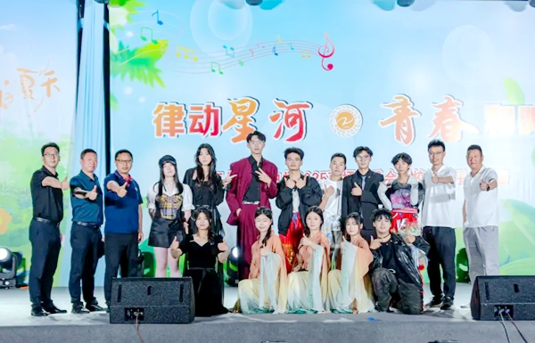 当晚,同学们以天为幕、以草为席,在繁星点缀的夜空下共赴音乐之约。随着第一束追光亮起,操场瞬间化作音乐的海洋。爵士乐的即兴洒脱与古典舞的形神兼备交相辉映,吉他弹唱的清新与民族器乐的悠扬碰撞融合。学生们用时而如溪流轻抚、时而似浪潮澎湃的歌声,将青春活力注入每个音符,赢得现场阵阵欢呼。