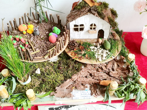 展览现场,作品形式丰富多样:水彩画色彩明快,勾勒出童真世界;手工制作的立体绘本、衍纸画细腻生动,彰显创作者的巧思;陶艺作品造型各异,传递出对传统文化的创新表达。其中,《秘密花园》《小年兽》等作品以稚拙笔触与天马行空的想象,紧扣学前教育专业“以美育人”的教学理念,赢得参观者纷纷点赞。
