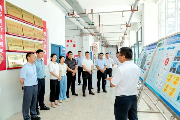 邓建明一行实地察看了学校基础设施、办学治校基本情况,参观了科教产业园“五大专业部”,现场亲身感受汽车智能制造、数控加工技术、美容美发等专业的独特魅力。