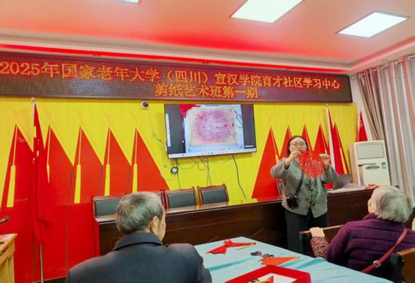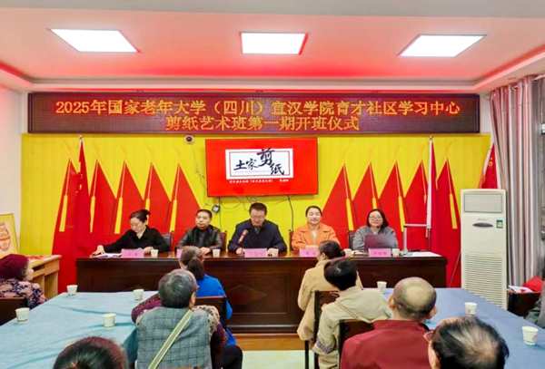 11月4日,国家老年大学(四川)宣汉学院育才社区学习中心《土家剪纸》培训正式启动。达州开放大学宣汉分校副校长于建明、东乡街道办人大工委主任刘小龙出席开班仪式,育才社区党委书记亢菊主持开班典礼,现场吸引了30余名社区老年居民的热情参与。