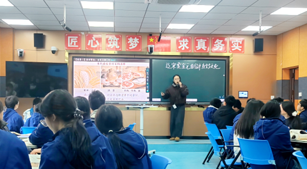 活动最引人注目的创新在于“八动”评课体系的实践落地。该框架以“主动探究、生动呈现、灵动思维、律动体验、触动情感、打动心灵、带动参与、互动共创”为核心,打破学科壁垒,推动知识传授向素养培育转型。音乐教师以《掀起你的盖头来》导入切分节奏,引导学生从“身体记忆”中理解乐理;历史课结合盛宴筹备设计辽宋夏金元的经济、社会、文化解读路径,让史料学习成为“可触摸的历史”。正如陈奎副校长所言:“‘八动’不仅是评课标准,更是‘以生为本’的教育哲学——让课堂成为学生发现自我、创造价值的舞台。”