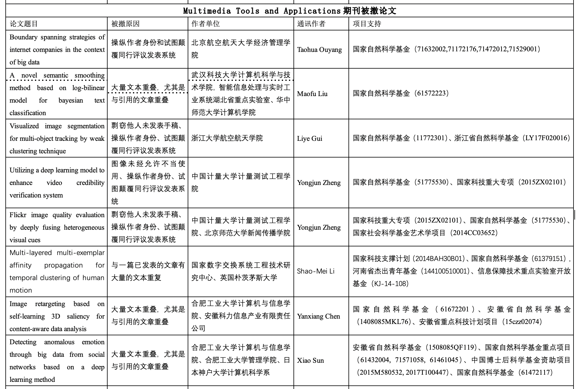 标注获得包括国家自然科学基金项目资助的被撤论文名单