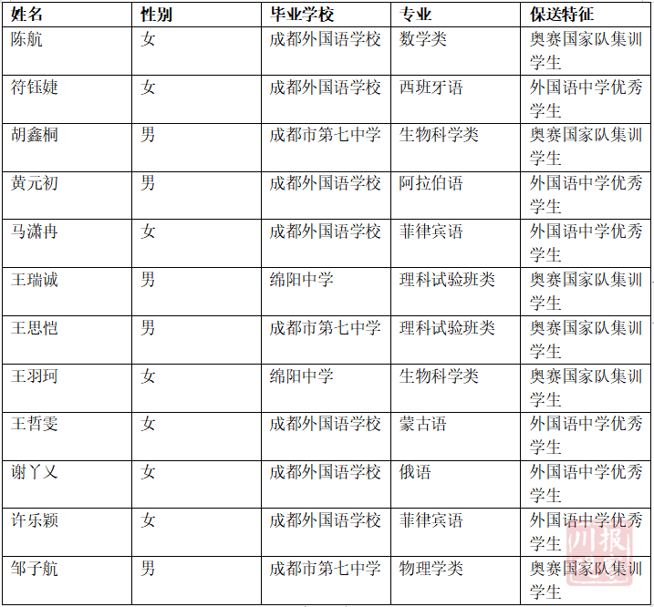 高考在即,近日,教育部阳光高考平台公示了2020年高校保送生拟录取名单(>>详情)。北京大学、清华大学拟分别在全国录取保送生176人、191人,合计367人,其中有32名四川高中生入选。