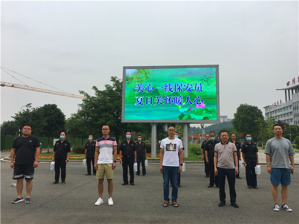 保安队员杨林忠代表全体保安人员表示,感谢学校对大家的牵挂和关心,四川省商贸学校是有温度的学校。学校领导的关怀让队员们深受感动,更加坚定了大家克服高温天气,坚守岗位做好疫情防控常态化工作的信心和决心。