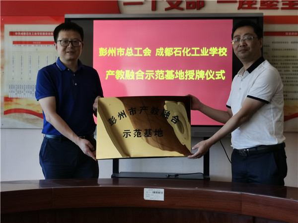 2020年8月24日,成都石化工业学校被彭州市总工会授予“彭州市产教融合示范基地”称号。彭州市总工会经审委主任武斌、彭州市总工会陈杰、教育局工会主席廖秀军、成都石化工业学校校长周川益参加授牌仪式。
