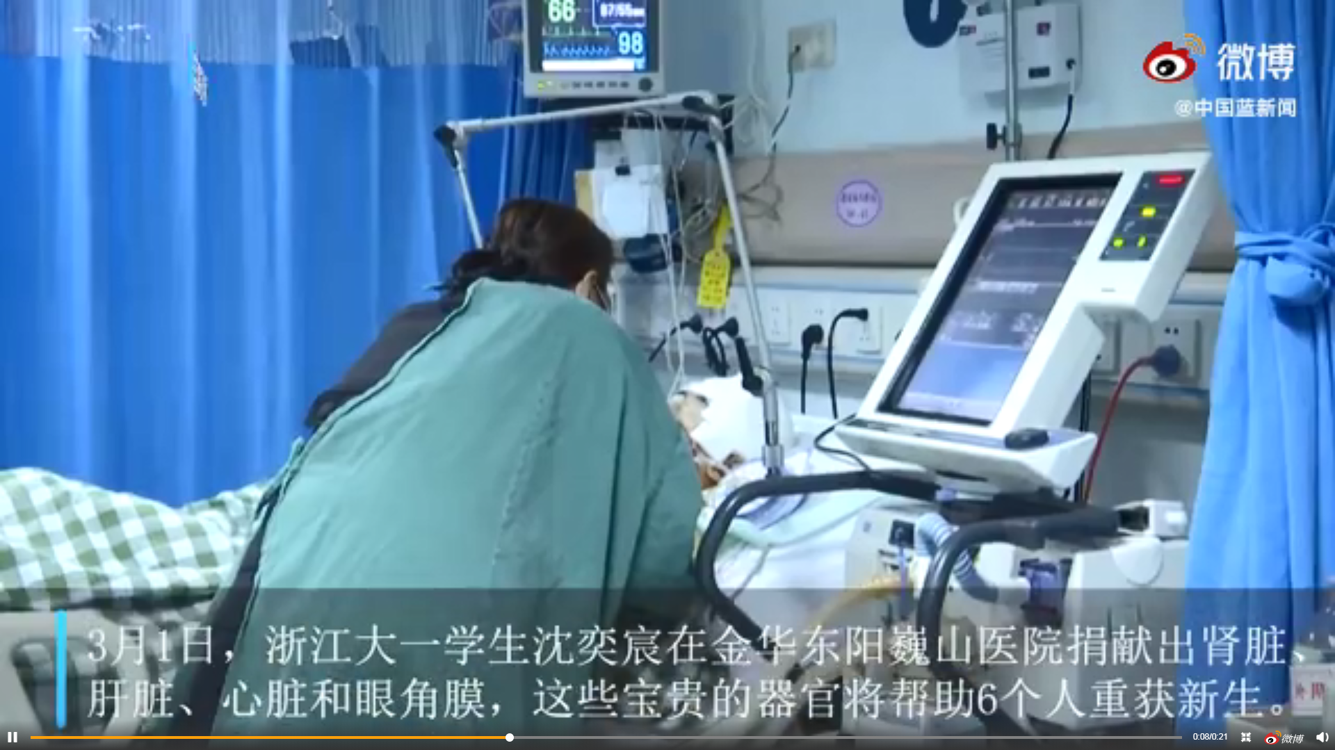 此前,沈奕宸遭遇车祸,经十余天抢救后被判定临床死亡。家人决定捐献其器官,让他的生命以另一种方式延续。致敬!