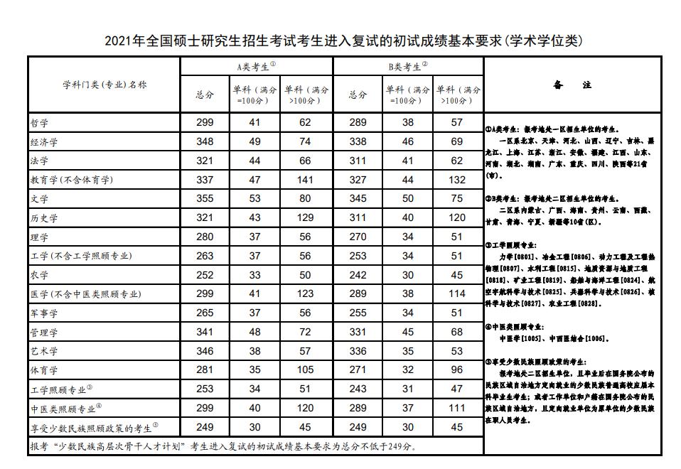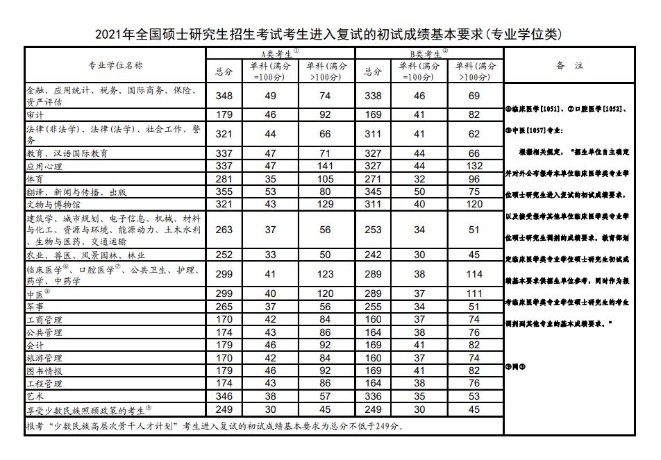 近日,教育部公布《2021年全国硕士研究生招生考试考生进入复试的初试成绩基本要求》(国家分数线)。根据《2021年全国硕士研究生招生工作管理规定》,招生单位要在国家分数线基础上,自主确定并公布本单位各专业考生进入复试的要求。