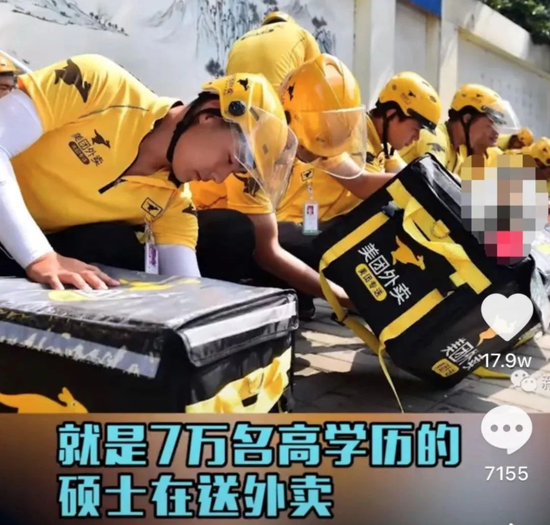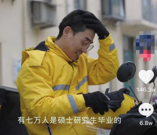 近日,这一素材还被部分短视频博主借题发挥,一段“硕士求职不成,转行做外卖员”的视频又在各大平台热传。
