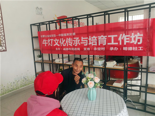 在该村的“牛灯文化传承与培育工作坊”,牛灯队现任队长杨智、副队长王锡年接待了同学们一行,“非遗使者”们详细询问和了解了“太和牛灯”的起源、发展、制作和表演方式等内容。