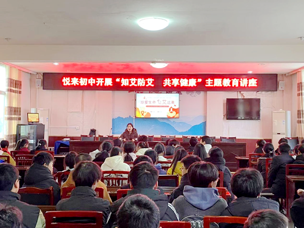 为加强在校学生预防艾滋病知识的宣传教育工作,推动学校预防传染病活动广泛深入开展,增强学生自我保护和健康意识,促进学生健康成长,12月12广安市广安区悦来初中举办了“知艾防艾 共享健康”主题教育讲座,学校初中师生代表聆听了讲座。