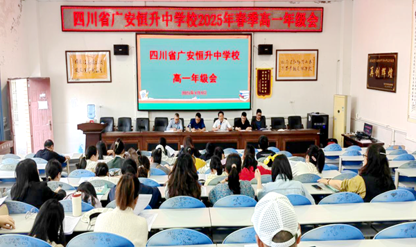 为总结阶段性教学成果、明确下一阶段工作目标,2025年4月9日,四川省广安恒升中学组织召开高一年级工作会议。会议围绕教学质量提升、年级管理优化及校园安全建设展开部署,学校领导班子、教务处负责人及高一全体教师参会。