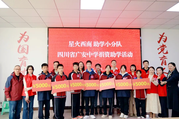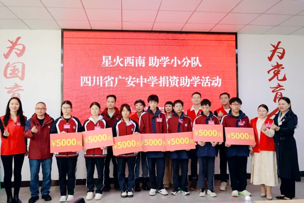 秋阳温煦,情满校园。近日,“星火西南”助学小分队携社会爱心企业家一行走进四川省广安中学,举行了一场温暖人心的捐资助学活动。据悉,本次捐助将惠及14名学子,标准为每人每年五千元,并持续资助三年,以切实行动纾解学子经济之忧,点亮成才希望。活动中,师生代表与爱心人士齐聚一堂,以歌声传递感恩,以善举汇聚暖流,共同见证这一物质帮扶与精神激励并重的温情时刻。
