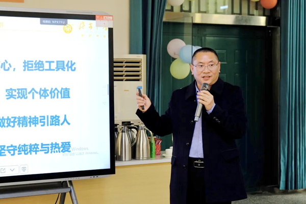 陈楠老师分享《浮世本来多聚散》,从书中感悟人生的聚散无常与教育的恒久坚守;胡静静老师带来《额尔古纳河右岸》,带领大家走进那片神秘土地,感受生命的力量与自然的敬畏;彭璇老师解读《嫌疑人X的献身》,从悬疑故事中探寻人性的复杂与爱的深沉;周嘉欣老师分享《我的画好不好》,在艺术与教育的交汇处,畅谈审美培养与心灵滋养。四位老师的精彩分享,赢得阵阵掌声,也让大家在书香中收获智慧与力量。