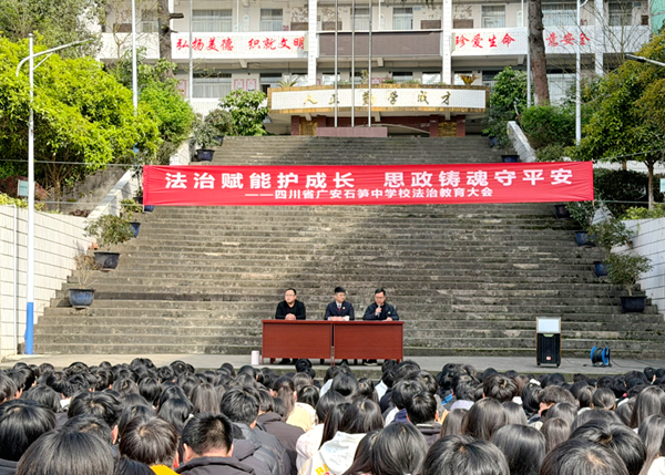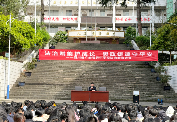 为进一步推进校园法治建设,增强学生法治观念与自我保护意识,营造安全、文明、和谐的育人环境,2026年3月20日下午,四川省广安石笋中学校举办法治教育专题讲座。