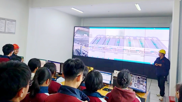 在中控室内,自动化控制系统正实时监测水质与运行数据,令同学们直观感受到现代供水技术的智能化与精细化。在检测环节,大家了解了浊度、余氯等关键指标的管控标准,深刻体会到“每一滴放心水”背后的严谨与坚守。参观过程中,同学们认真聆听、积极提问,围绕节水护水相关问题与工作人员展开深入交流。