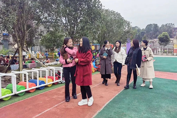 邻水县研培中心曾佳珲主任、机关幼儿园园长贺雄英、第十三幼儿园园长朱中芬、第十九幼儿园园长李美欣等一行人,在观音幼儿园园长包小容的带领下,参观了幼儿园的户外环境,观摩了幼儿园的自主游戏活动,充分了解了办园特色和教育理念,感受到了该园的文化内涵和环境育人的魅力。
