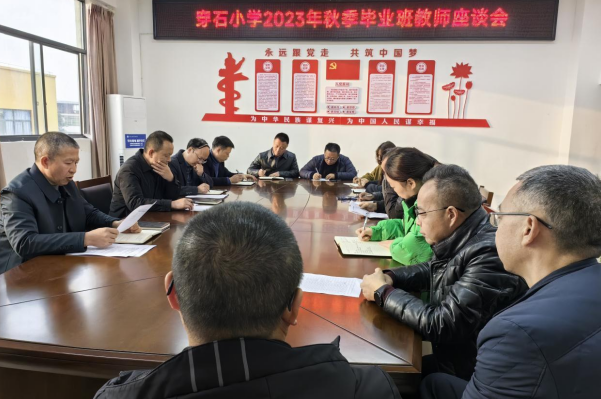 为进一步做好毕业班教学和日常管理工作,全面提升教育教学质量,保证毕业班目标任务的达成,12月8日下午,广安经开区穿石小学在学校支部活动室召开了2023年秋季毕业班教师专题会议,学校行政管理人员和九年级全体教师参加了本次会议。