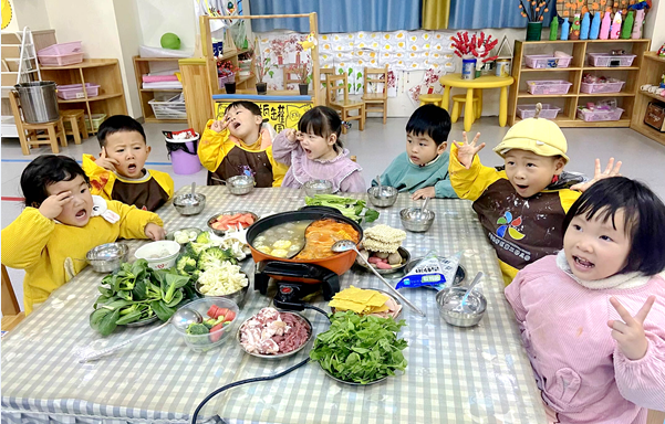 美食味觉,共享喜悦。为开启幼儿味觉盛宴,组织全体师生开展自助火锅美食活动,小朋友们纷纷从自家带来各种不同蔬菜、肉食,在老师的指点下,由小朋友们亲自洗菜、煮菜,共同品尝自己辛勤制作的美食,相互谈感受并分享心中成功的喜悦,烘托节日氛围。 本次热闹非凡的节日迎新活动,大大提升了孩子的自信、相互协作的团队精神,展现了幼儿朝气蓬勃的活力和积极向上的精神风貌,弘扬了传统节日文化,给孩子们留下了美好的回忆。(广安经开区第二幼儿园)