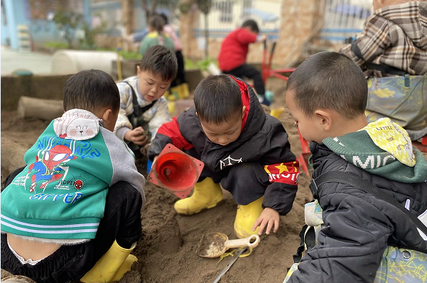 玩沙对不同年龄班的幼儿来说有着不同的教育价值,对于小班幼儿来说,玩沙更像是利用一个低结构的材料为载体,在沙中开展各种建构、角色的游戏,通过合作探究来解决问题的活动。