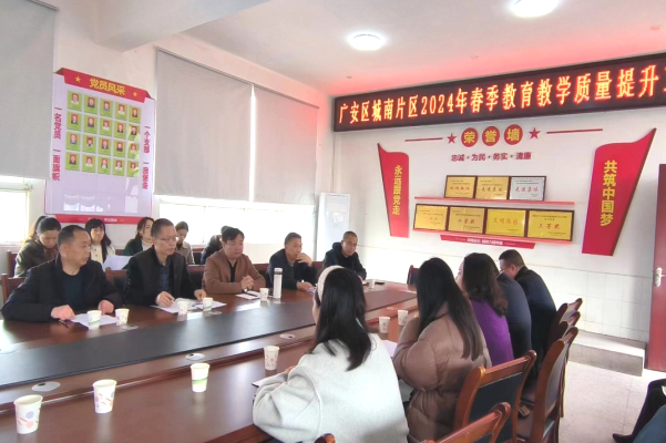 根据广安区教育科技和体育局2024年工作要点和提质工作会要求,3月19日,广安市广安区城南片区督导组在方坪小学召开2024年春季教育教学质量提升工作会。