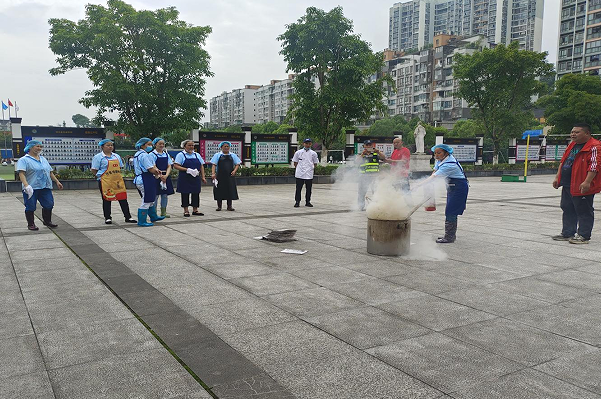 为增强食堂工作人员消防安全意识,提高食堂消防安全事故的应急处置能力,5月11日,邻水县第六中学校组织食堂工作人员进行消防安全应急疏散演练。