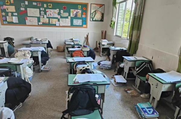 9时10分,安办主任广播通知全体教师到达各自的点位,负责维持学生的纪律及动作指导。9时14分40秒,学校地震预警平台倒计时响起,防震应急疏散演练正式开始。安办主任广播通知:“全体师生请注意,现在发生了地震,请大家不要慌张,听从指挥,紧急避震。”大约12秒后,学校广播发出疏散信号。全校师生迅速进入应急状态。在老师们的引导下,学生们按照预设的疏散路线,有序地撤离教室,前往指定的安全集合地点。在疏散过程中,师生们保持冷静、迅速、有序,没有出现拥挤、推搡等危险情况。
