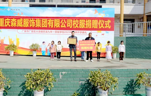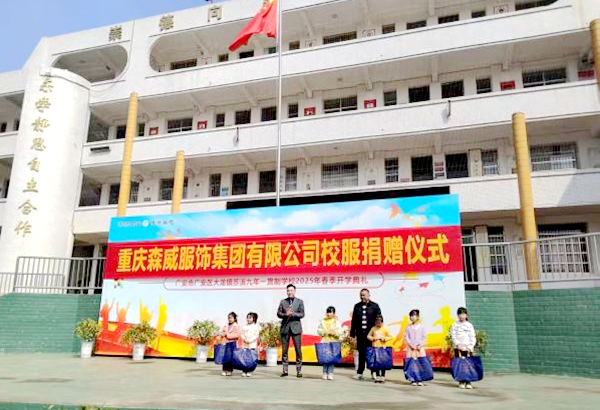 2025年4月7日,春意盎然的校园里,重庆森威服饰集团有限公司向广安市广安区苏溪小学捐赠校服仪式在学校隆重举行。此举为苏溪小学的学子们送来了温暖与关爱,彰显了企业的社会责任感和对教育事业的坚定支持。