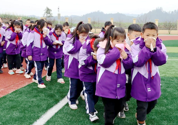 上午8时30分,随着急促的警报声响起,全校师生立即应急响应,各班三班主任按照应急疏散路线组织学生用湿毛巾捂住口鼻,弯腰低姿沿安全通道快速撤离,用时4分15秒,全校师生全部安全疏散至操场指定区域,全程无拥挤、无遗漏,展现出良好的应急素养。
