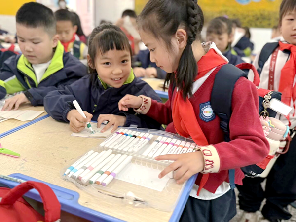 随后,该园幼儿们走进一年级各班教室,开启了小学课堂的体验之旅。他们认真观摩并体验了一年级小学生上课的纪律、坐姿、举手发言等课堂规则,在生动有趣的课堂氛围中,初步感受了小学学习与幼儿园学习的不同之处。课间时分,孩子们又一同观摩了实验学校的大课间活动。丰富多彩的课间活动,让孩子们看到了小学生课余生活的活力与乐趣,进一步激发了他们对小学生活的向往。