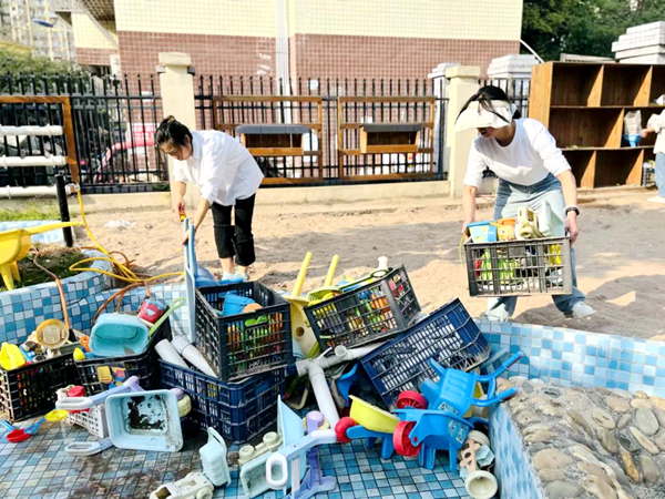 老师们和安保人员对幼儿园进行全面清扫。勤劳的身影穿梭在幼儿园的每个角落,经过努力的“奋战”,幼儿园的每一个角落都清洁亮丽焕然一新。