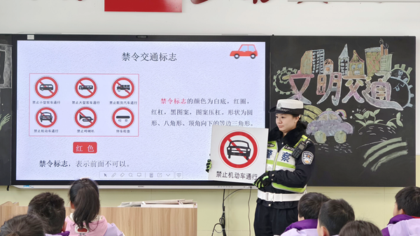 活动中,警官结合校园周边交通环境和学生出行特点,用通俗易懂的语言,围绕步行、骑车、乘车、安全标志等方面的交通安全知识展开讲解。通过讲述典型交通事故案例,向学生强调了遵守信号灯、走斑马线的重要性,以及禁令、指示等常见交通标志的含义,帮助学生在出行时能够正确识别并应对,降低交通安全隐患。