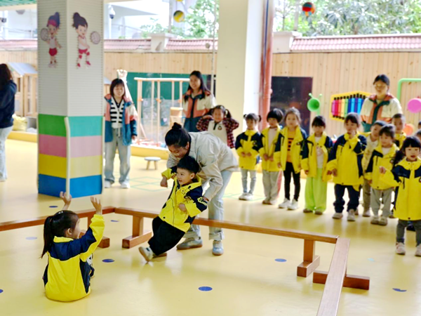 演练中,幼儿园以情景模拟的形式,场景再现了幼儿溺水、身边伙伴及时呼救成年人。拨打急救电话、借助木棍、游泳圈等物体将溺水者成功就上岸的场景。