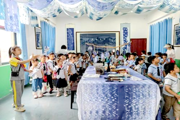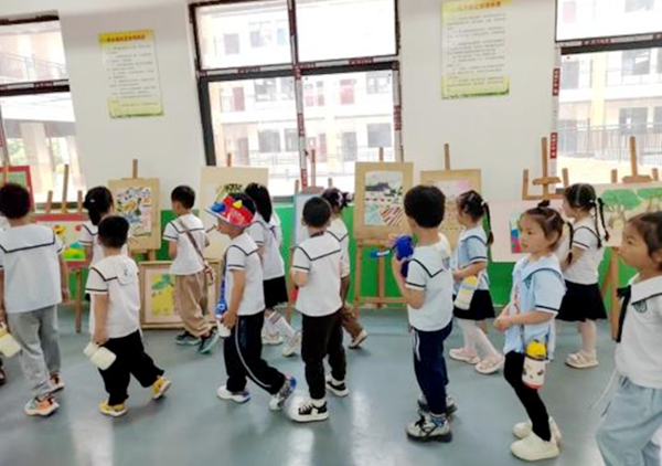 随后,在大哥哥、大姐姐的带领下,小朋友们依次参观了学校的扎染房、书法室、音乐教室和美术教室等多功能室。